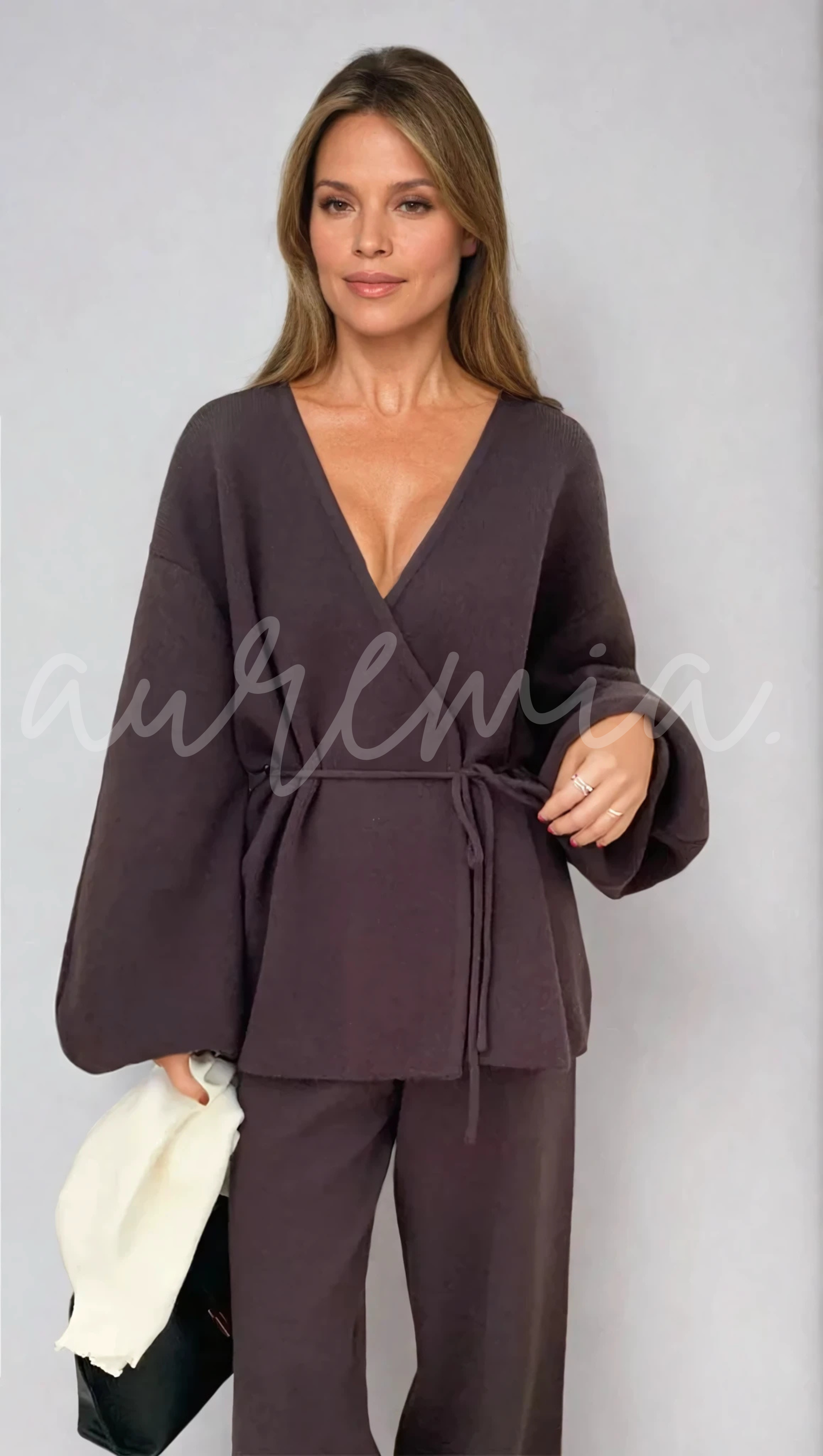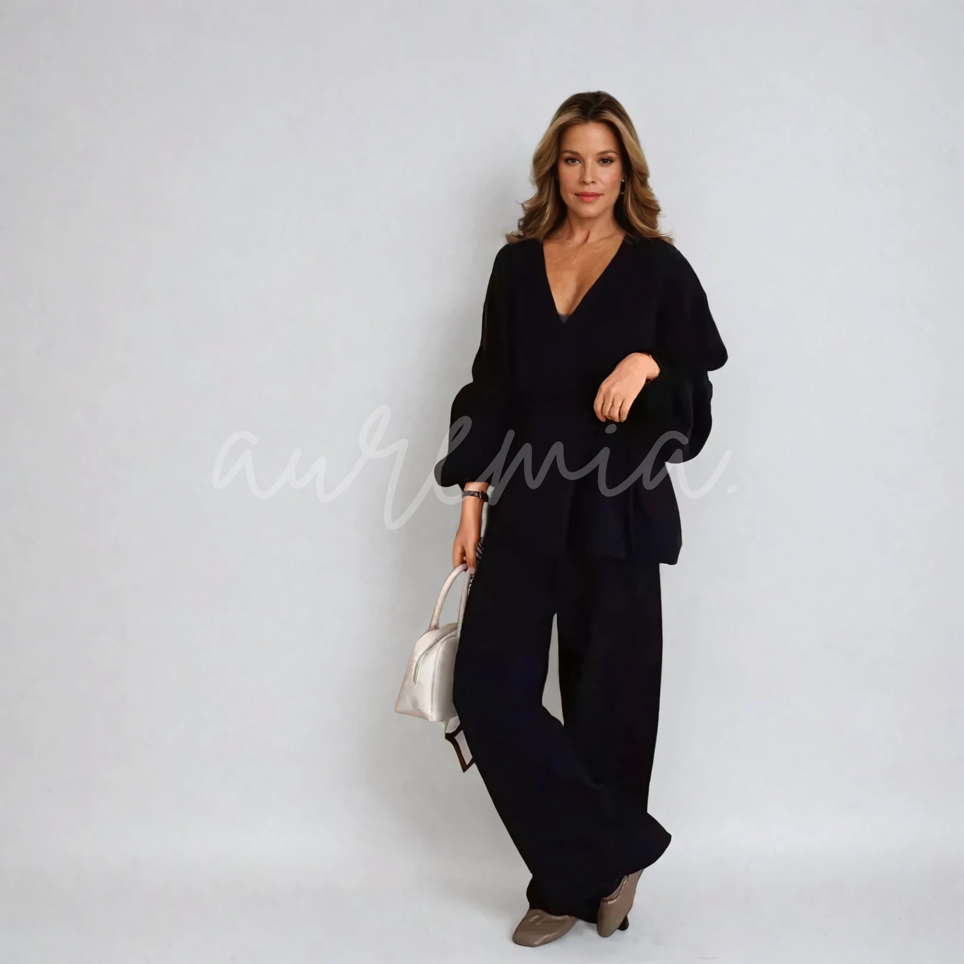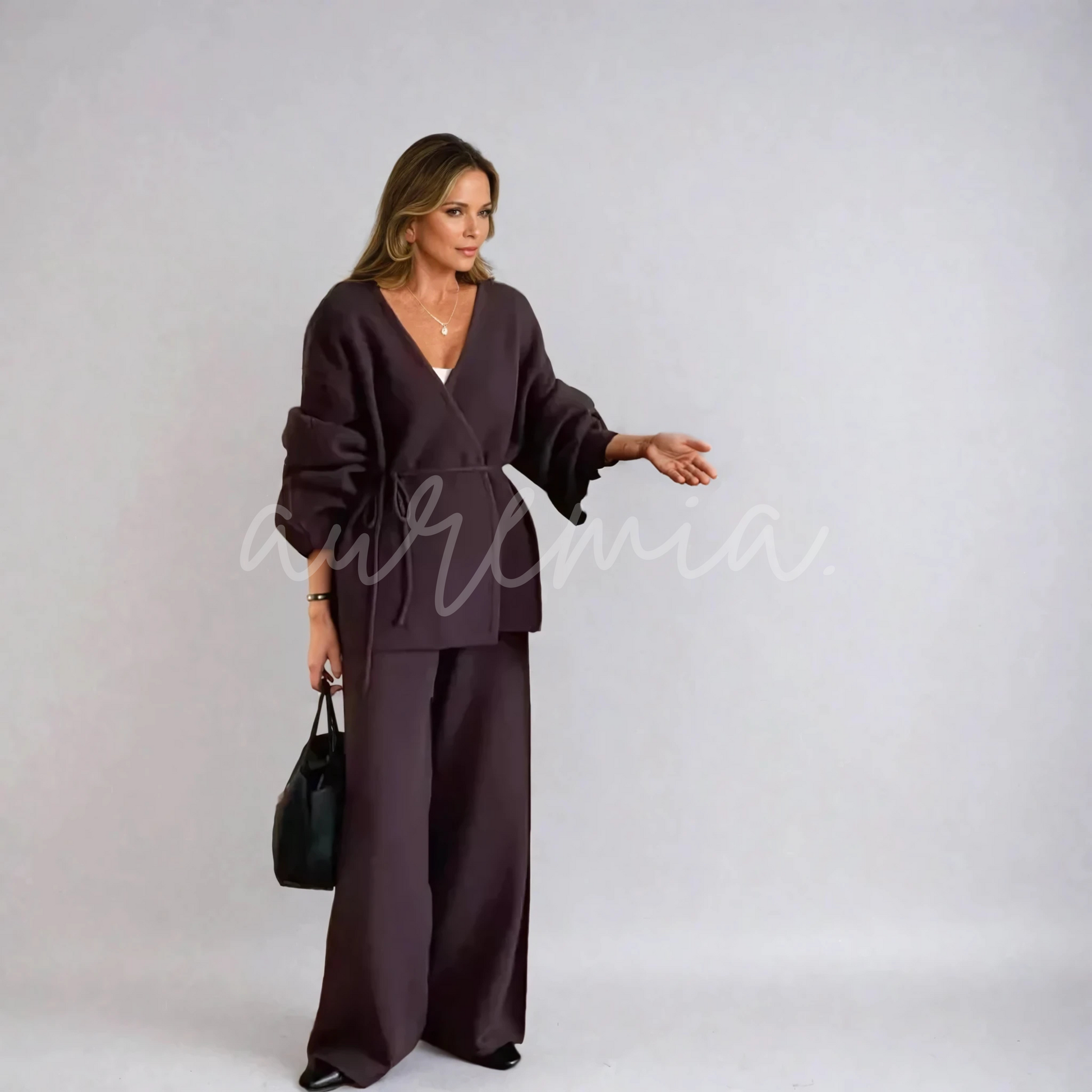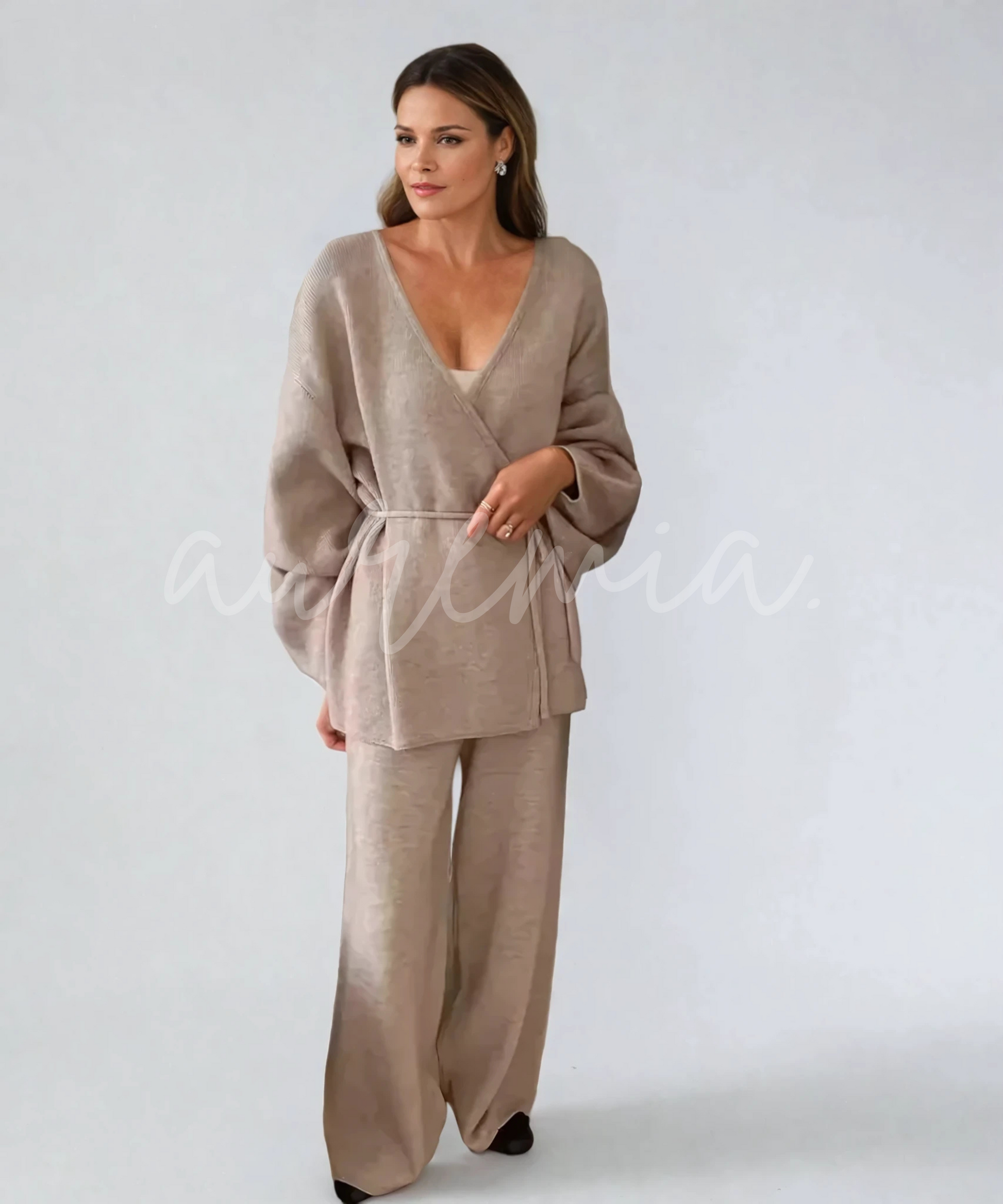 Poczuj idealną równowagę między elegancją a komfortem z ALBERTINA – ekskluzywnym, dzianinowym zestawem 2-częściowym, który emanuje zarówno wyrafinowanym stylem, jak i swobodnym luksusem.