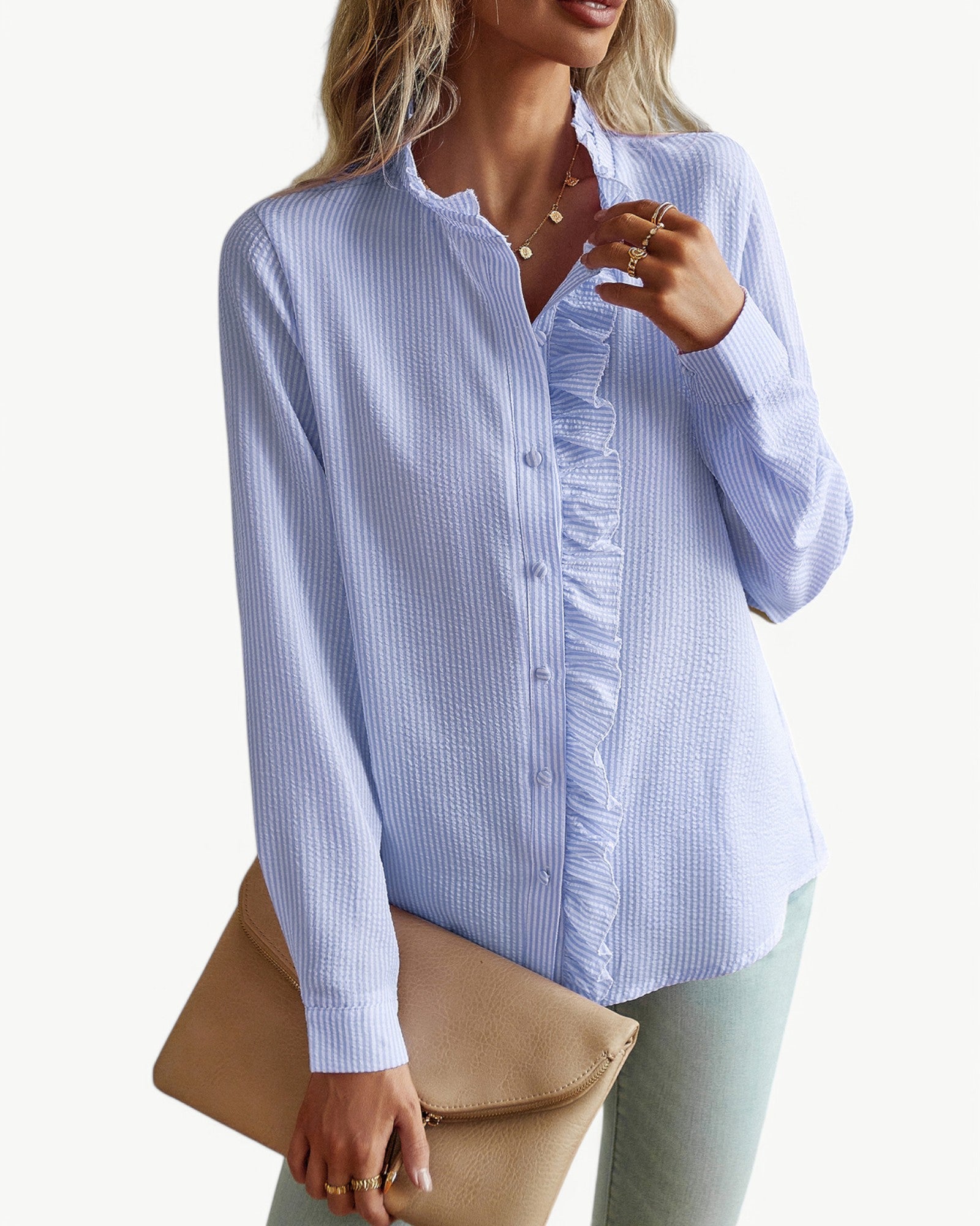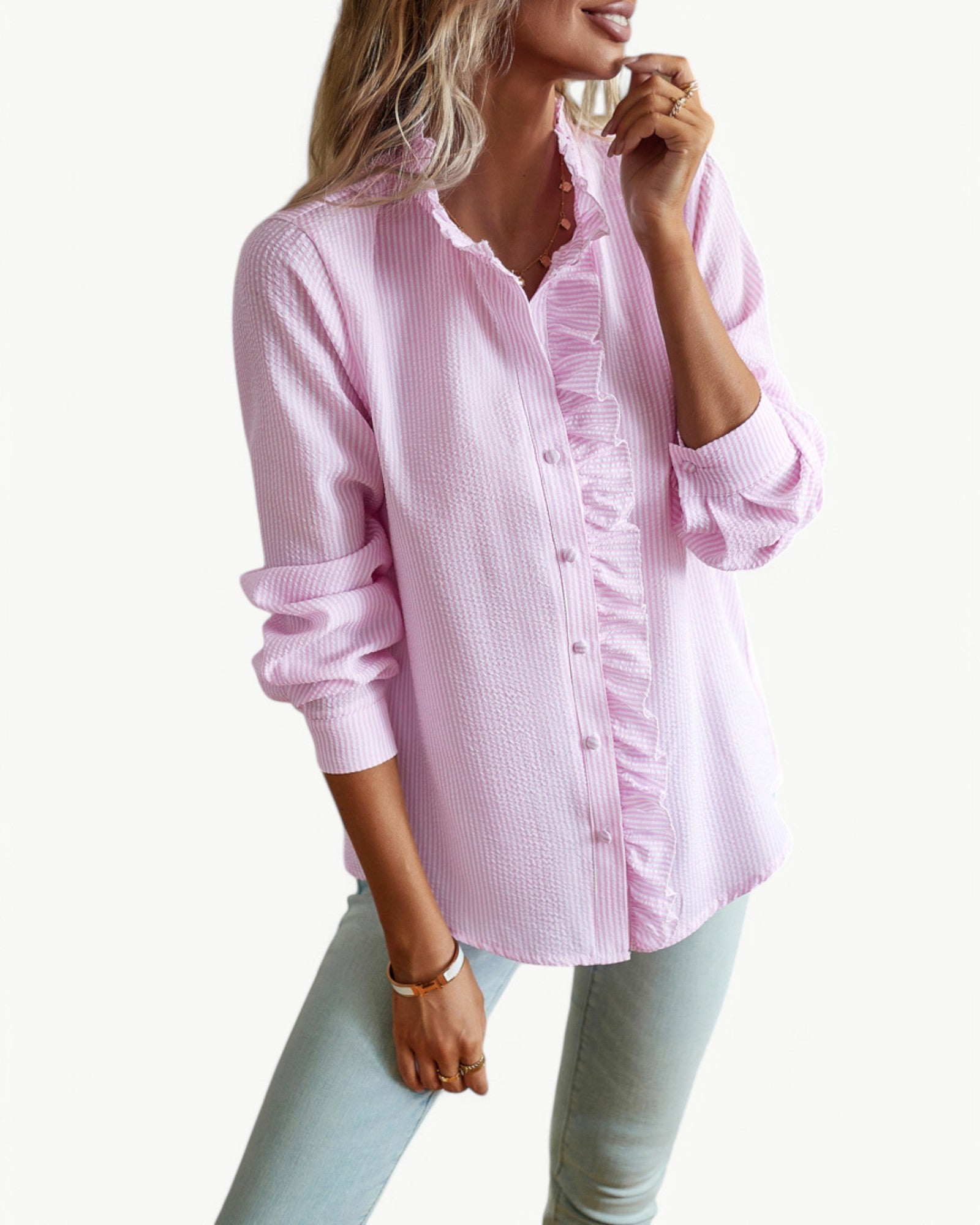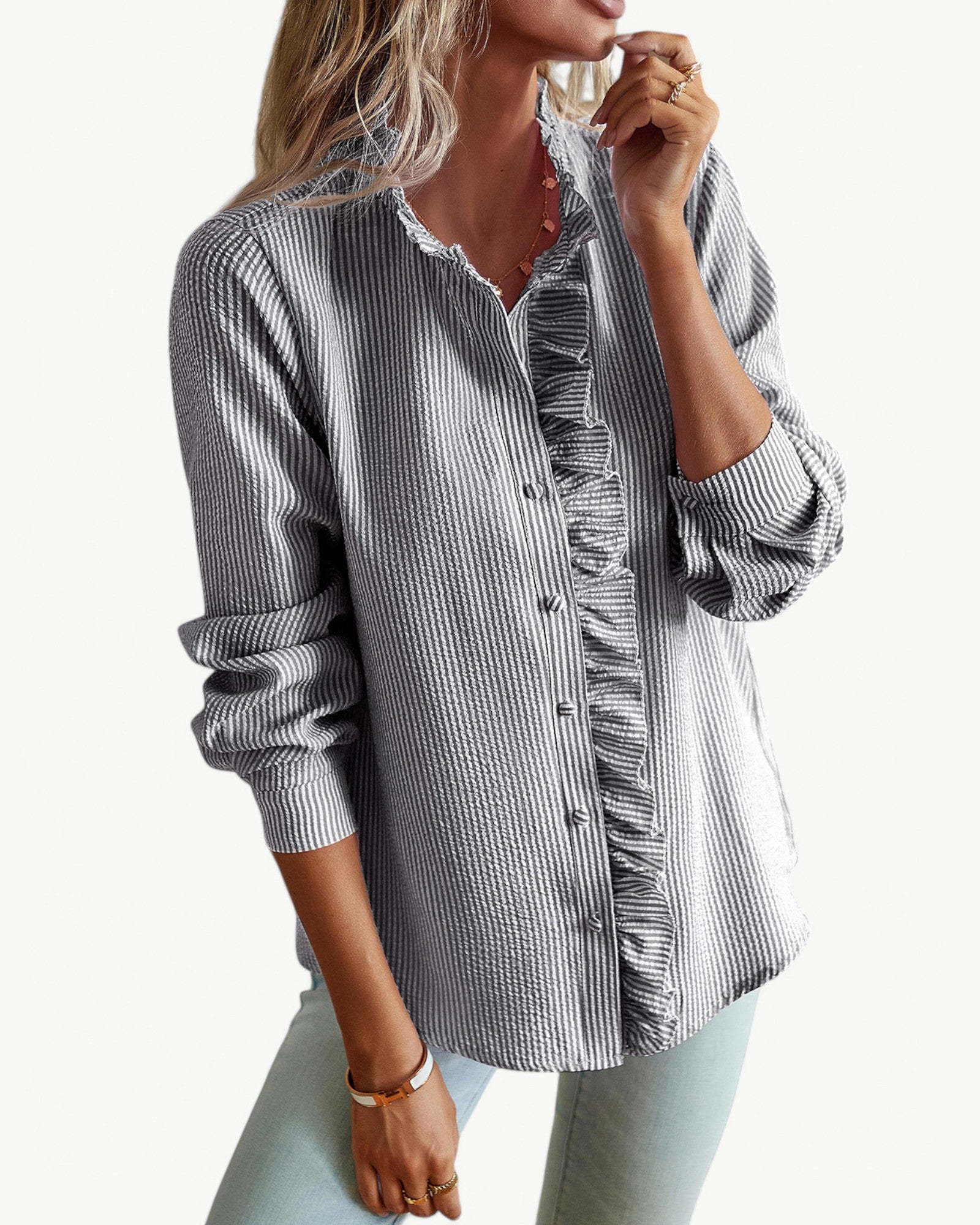 CLÉMENCE to elegancka i ponadczasowa bluzka z piękną falbaną, która dodaje romantycznego i kobiecego akcentu. Sofistykowany design z lekkiego i elastycznego materiału sprawia, że bluzka jest idealna zarówno na co dzień, do biura, jak i na uroczyste okazje.