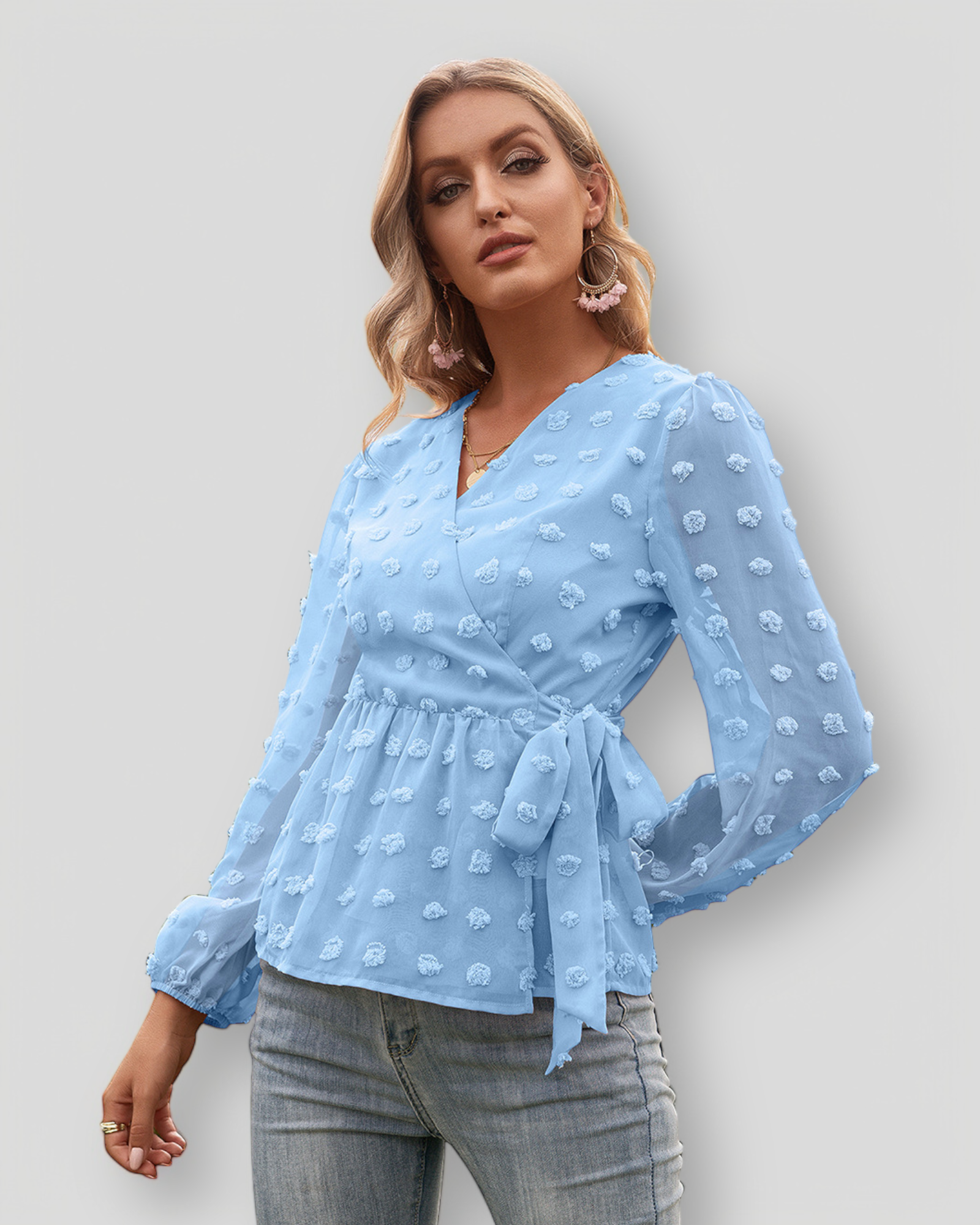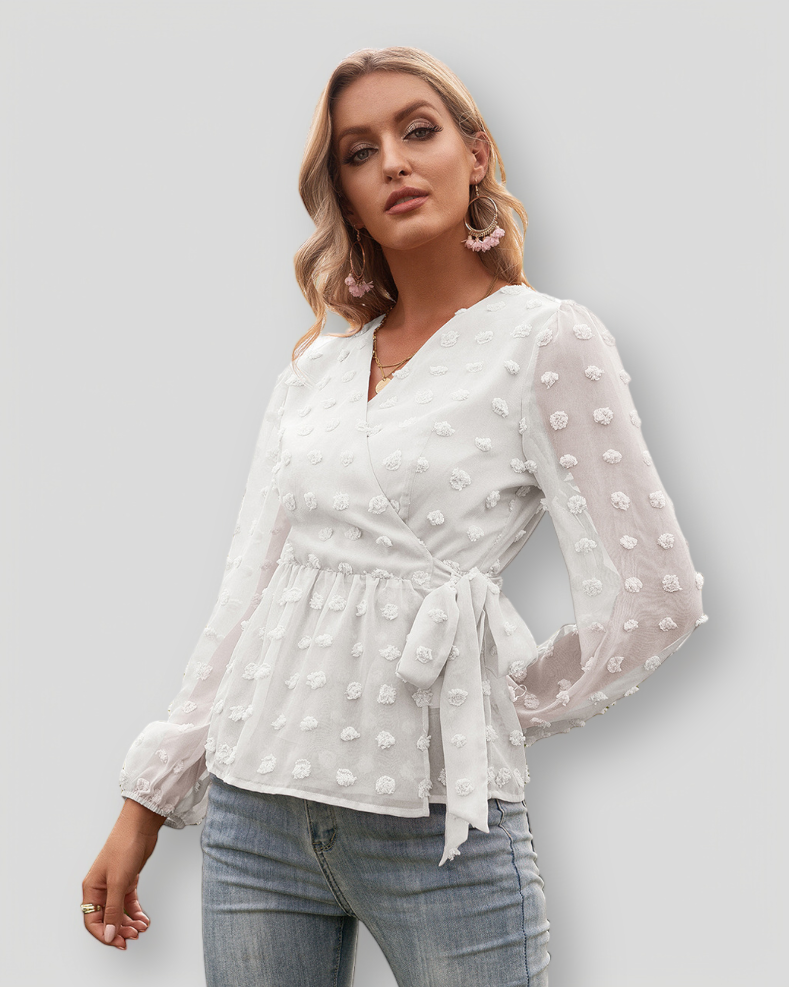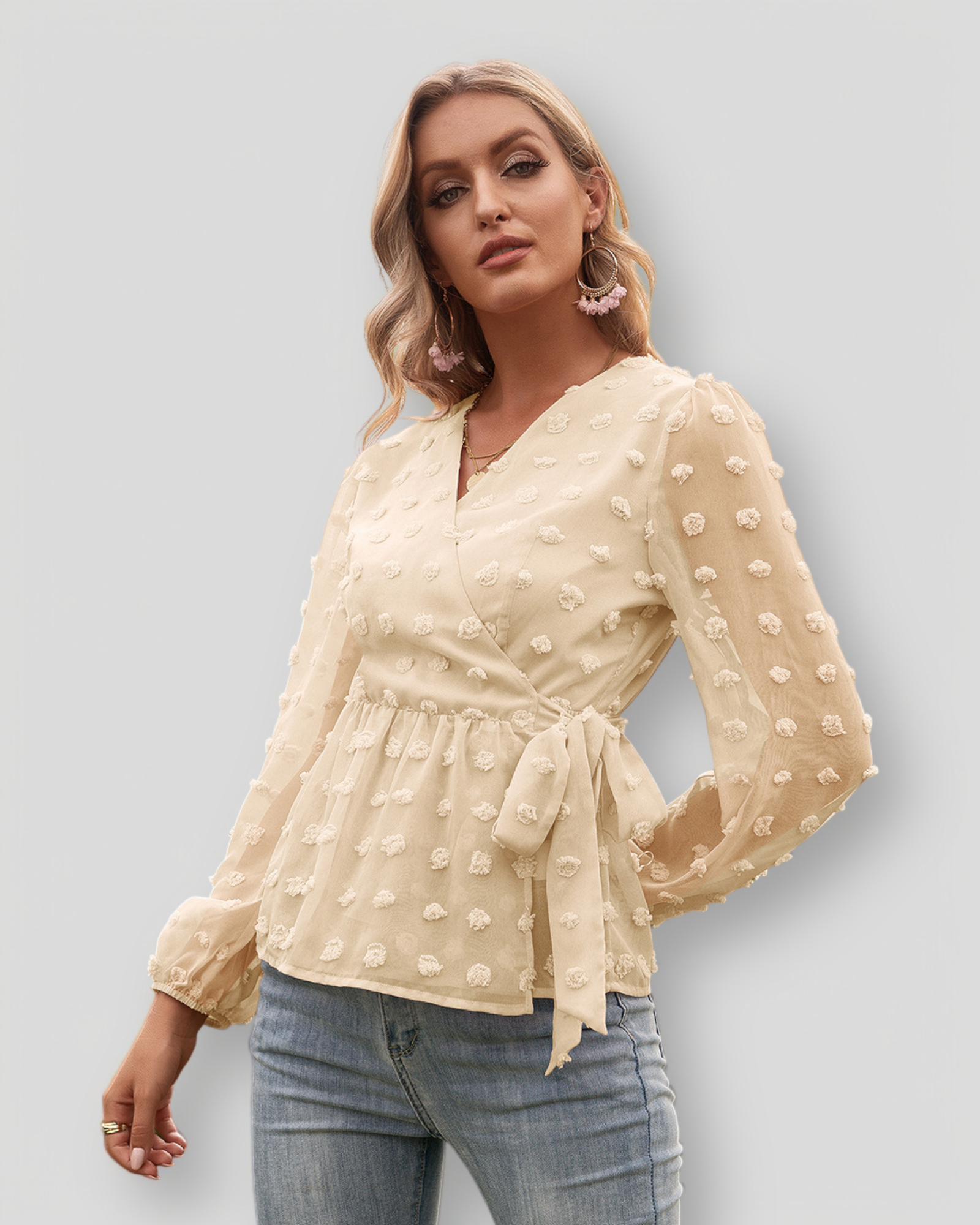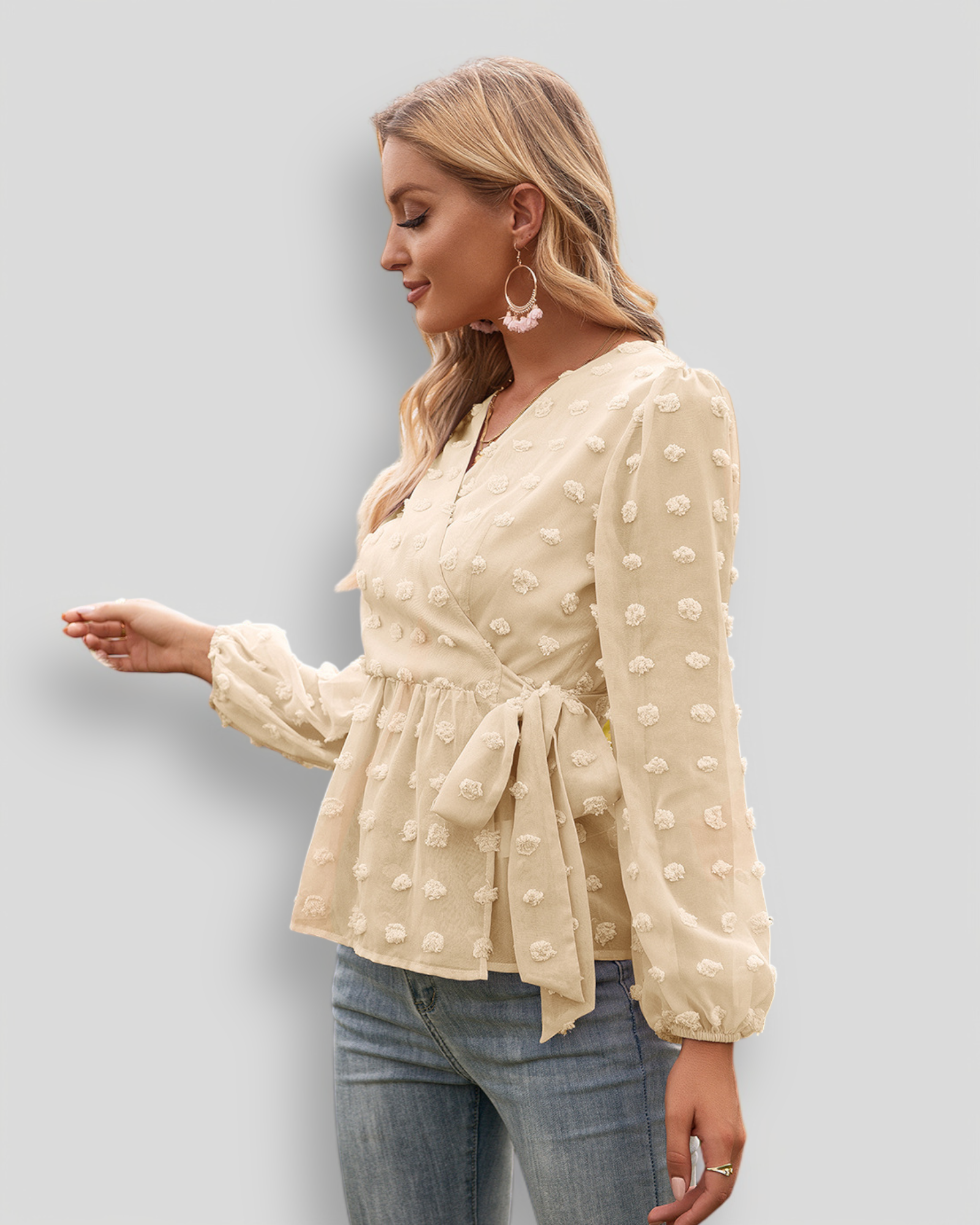 Stylizuj ÉLISE z dopasowanymi spodniami dla klasycznego wyglądu lub z dżinsami dla bardziej swobodnej i szykownej stylizacji. Idealna do biura, na kolację lub na elegancki codzienny look.