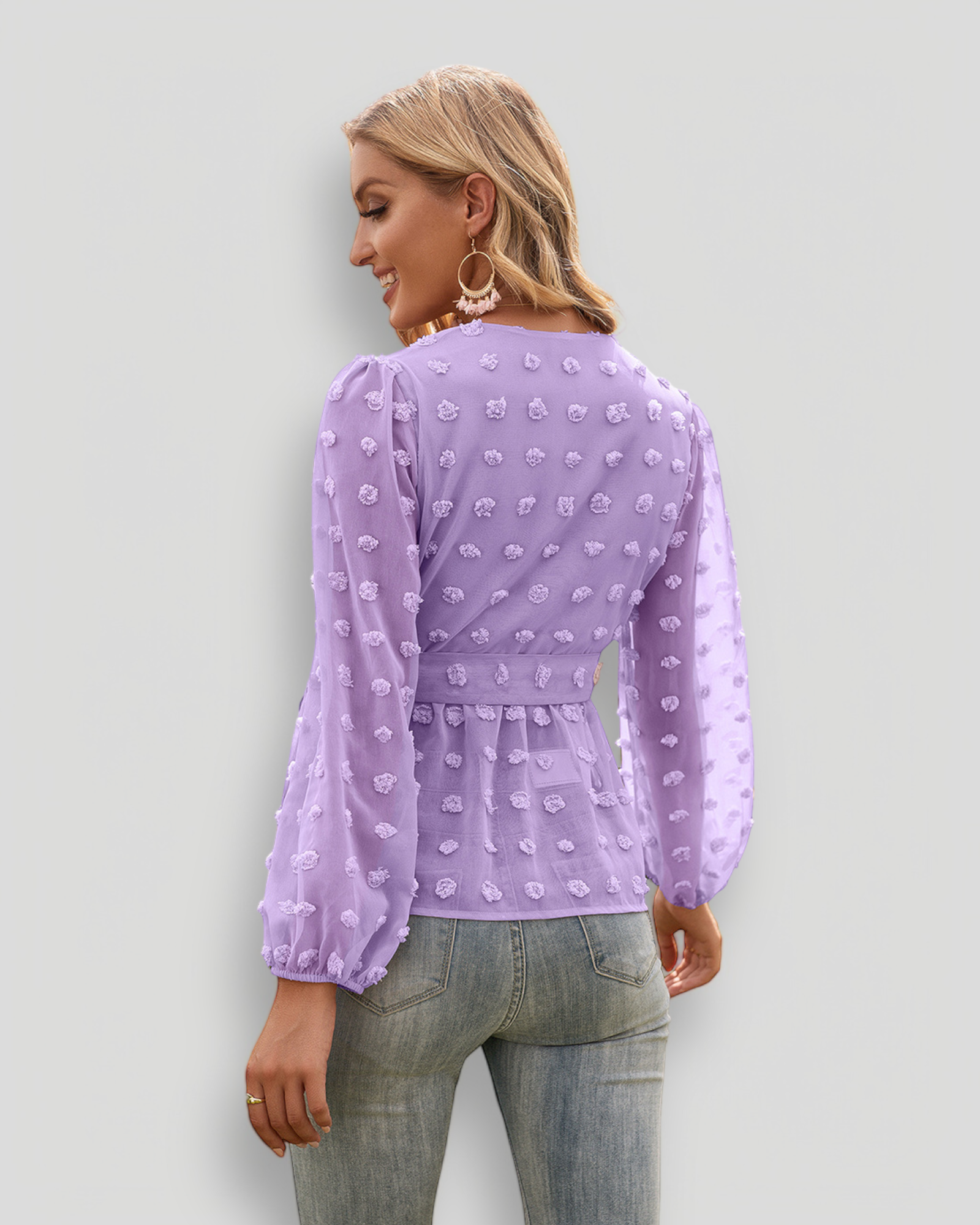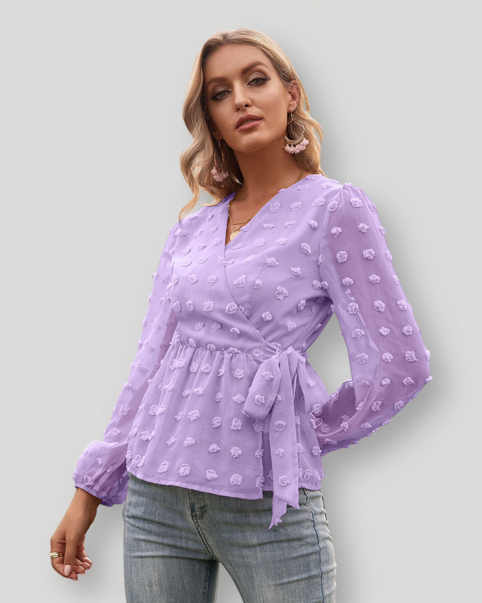 ÉLISE to elegancka i kobieca bluzka z cienkiego poliestru, zaprojektowana z korzystnym dekoltem w kształcie V oraz dekoracyjnymi kropkami, które dodają subtelny i stylowy akcent. Bluzka jest podszyta, co zapewnia komfort noszenia i piękny opad, co sprawia, że jest idealna zarówno na codzienne, jak i na bardziej eleganckie okazje.