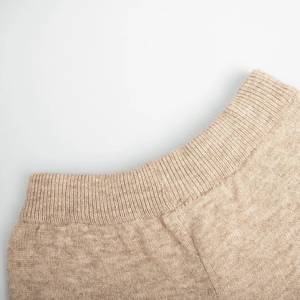 Pasujące spodnie o równie luźnym, ale eleganckim kroju, które doskonale uzupełniają sweter. Zostały zaprojektowane z elastycznym pasem dla optymalnego komfortu i korzystnego dopasowania. Dzięki ponadczasowemu wzornictwu i subtelnym detalom, te spodnie szybko staną się ulubionym elementem Twojej garderoby.
