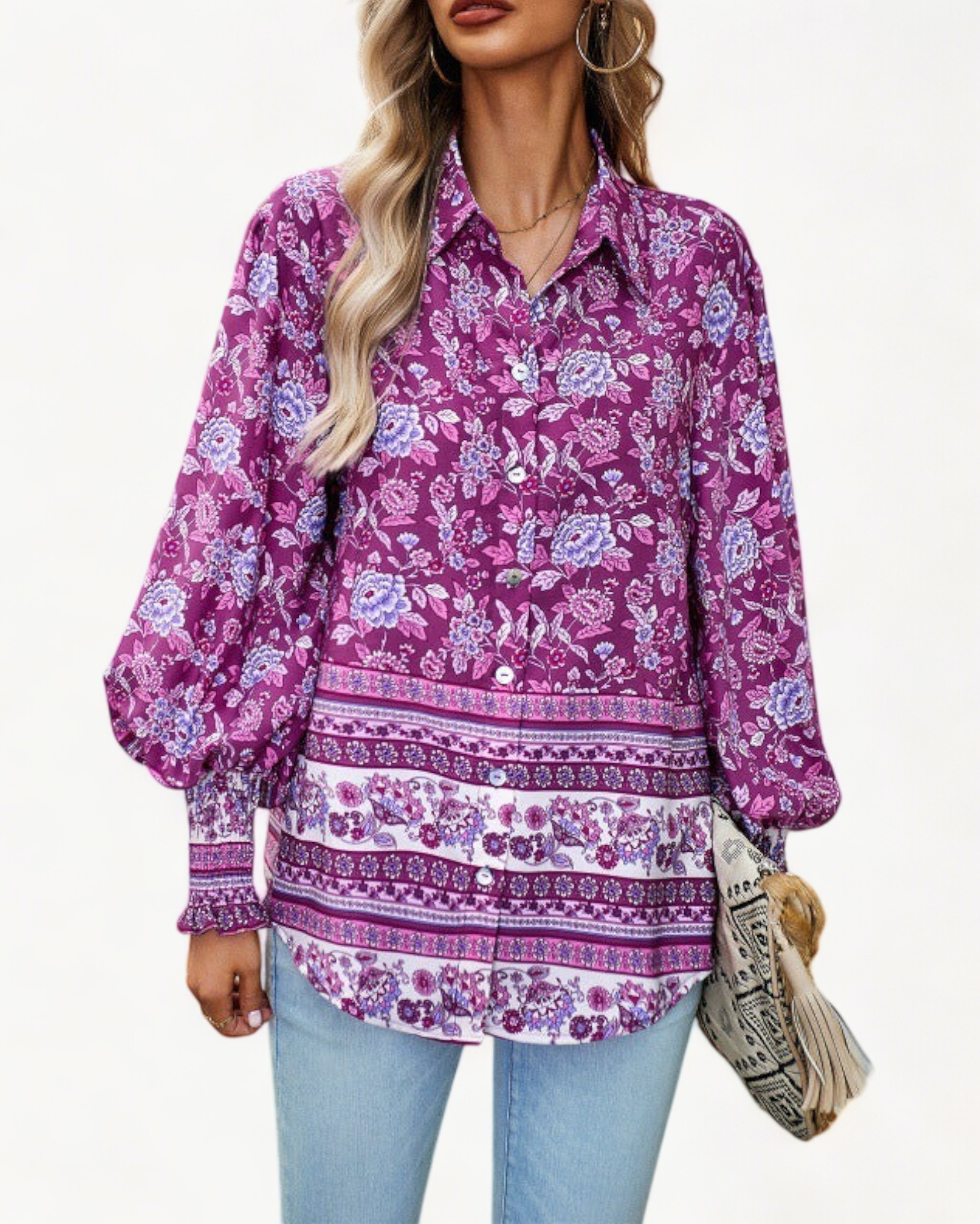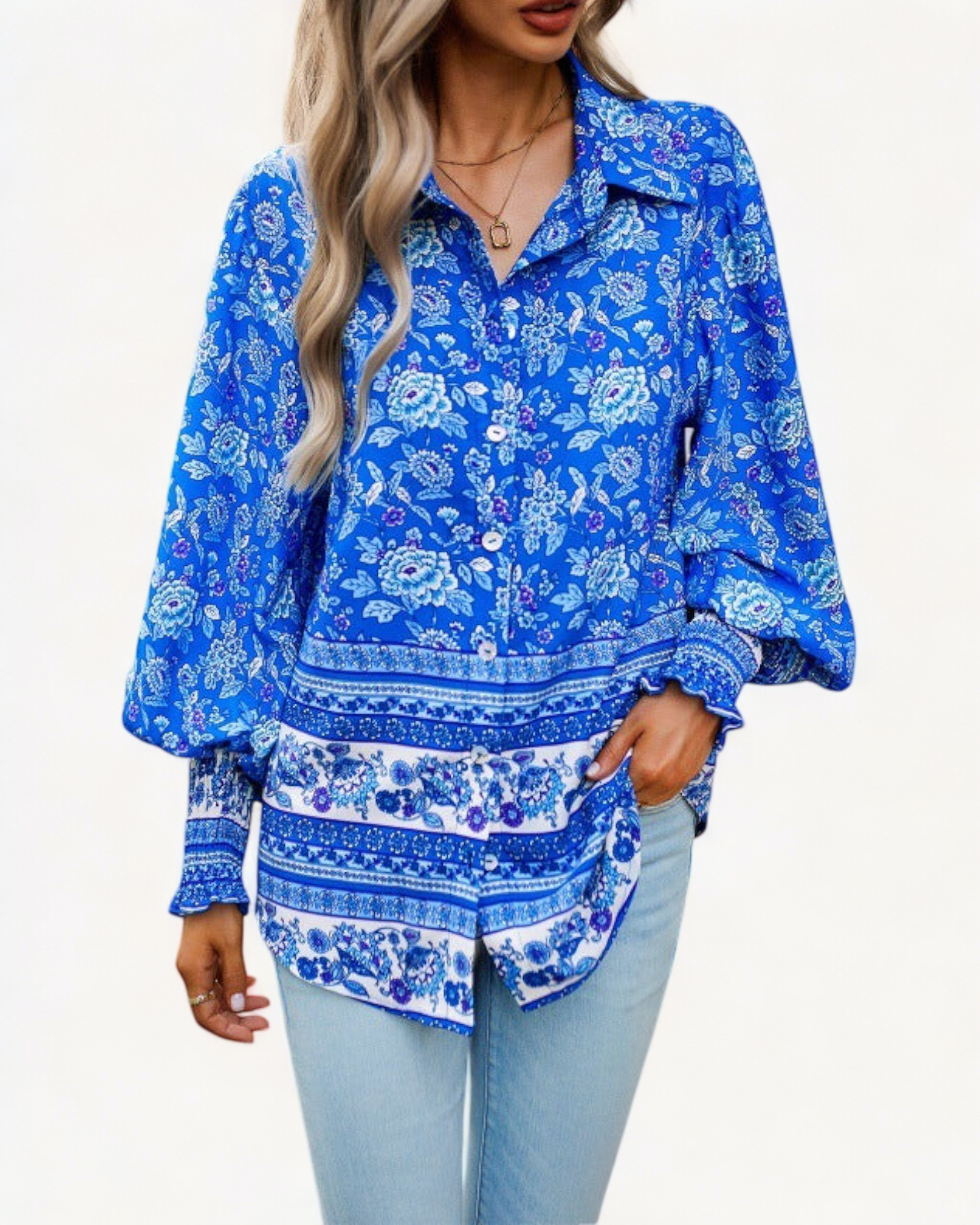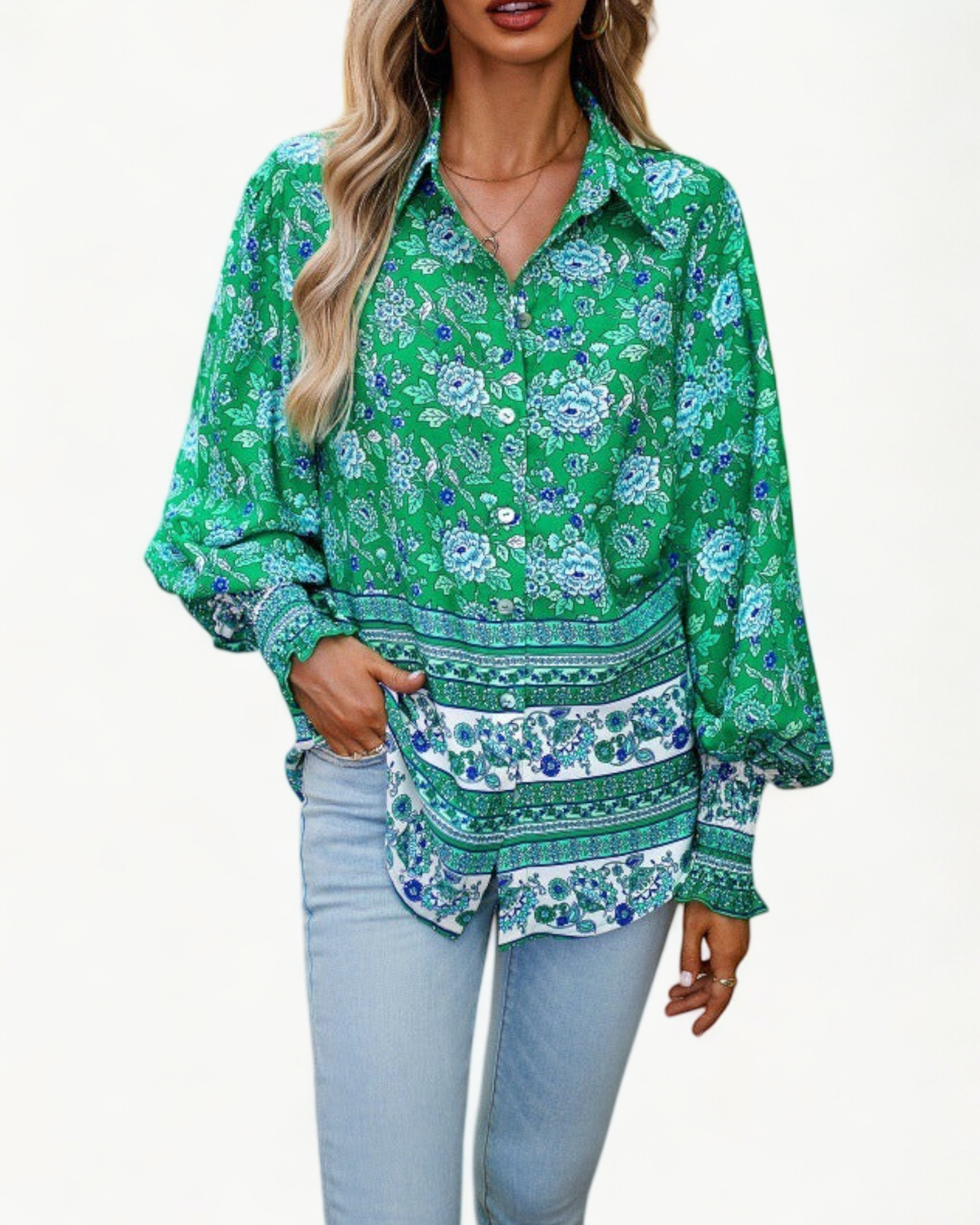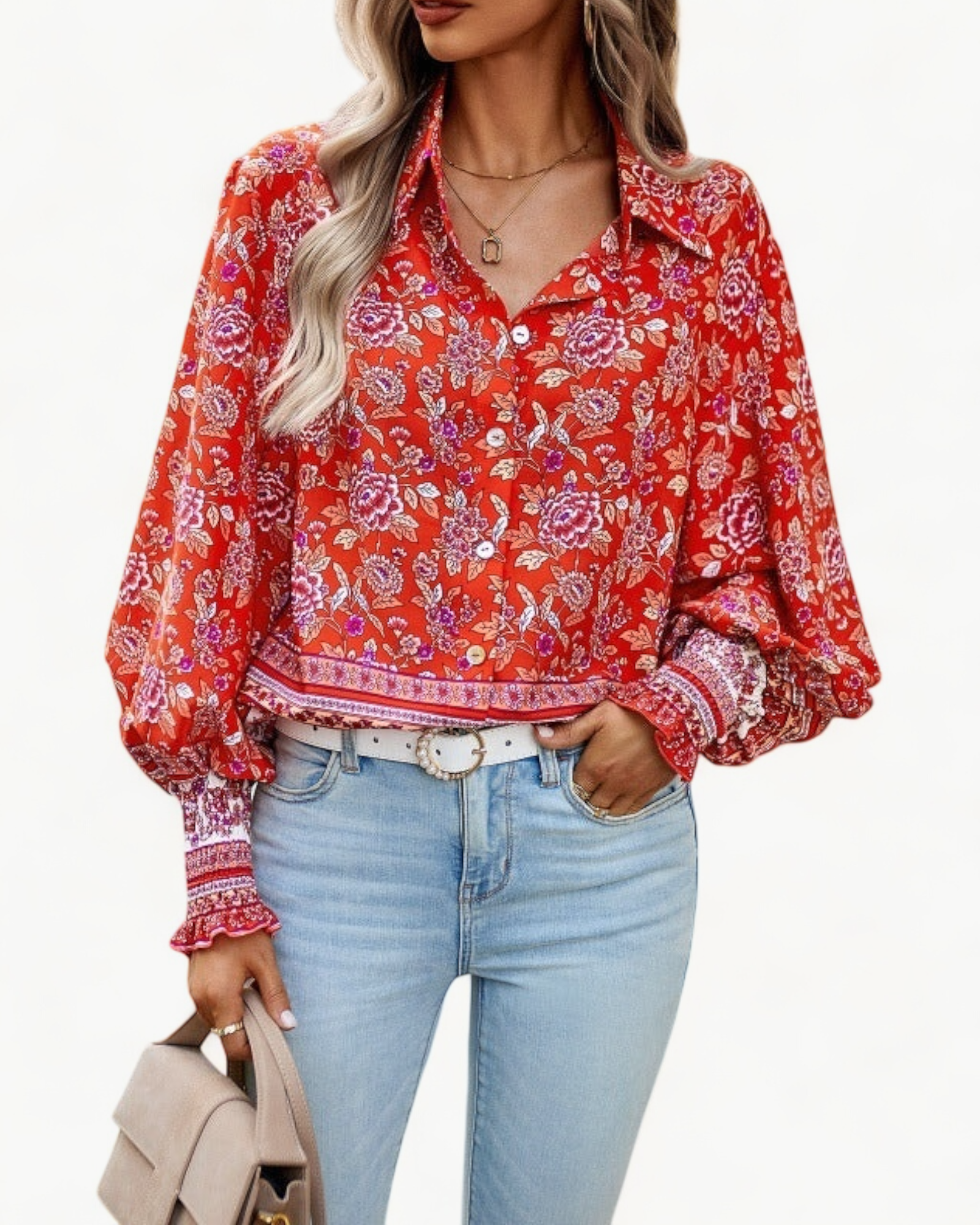 Kwiatowa koszula w intensywnym wzorze i luźnym kroju. Posiada bufiaste rękawy z gumką na końcach, klasyczny kołnierzyk oraz guziki z przodu. Idealny wybór dla tych, którzy chcą dodać trochę koloru do swojej stylizacji.