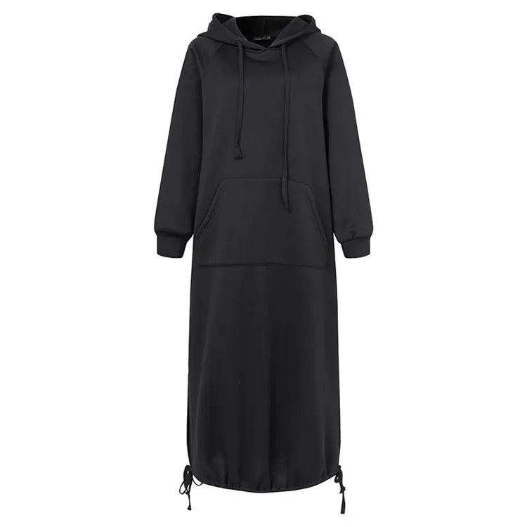 Maksymalizuj zarówno komfort, jak i styl dzięki naszej modnej sukience z kapturem. Ta sukienka łączy swobodną atmosferę klasycznej bluzy z nowoczesną, wydłużoną sylwetką, co daje odświeżony i wyrafinowany wygląd. Dzięki miękkiej i elastycznej mieszance bawełny sukienka oferuje wygodne dopasowanie, które czyni ją idealnym wyborem zarówno na relaksujące dni, jak i na bardziej eleganckie okazje.